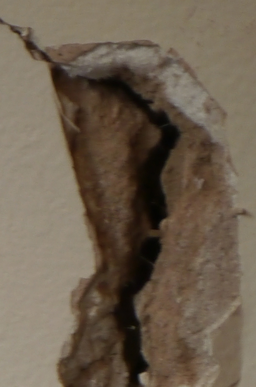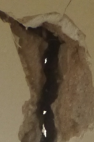 Now look at the pictures below. Both photos are of the same crack –the photo on the left was taken the day after the damage. And on the right the same crack, 3 months later. YES–it’s wider (now you can actually see daylight through it!!). Movement in the bay had clearly continued during the weeks of hassle and stalling by EAS–even though EAS denied it ( but, of course, they hadn’t actually bothered to take any measurements, so what would they know!)